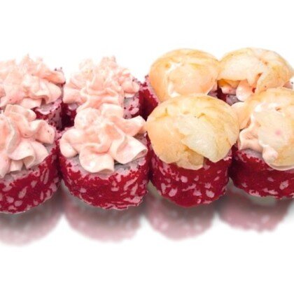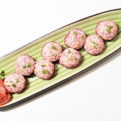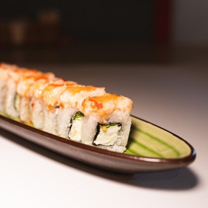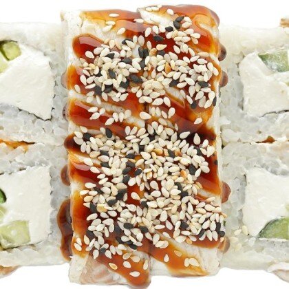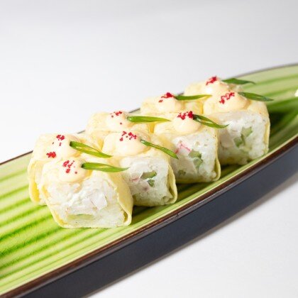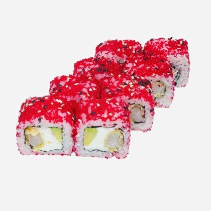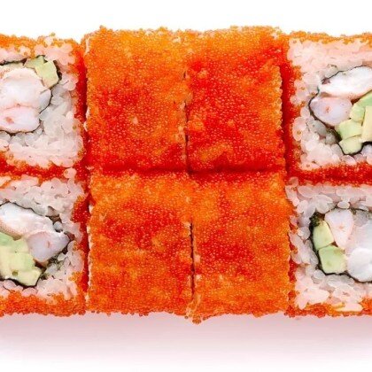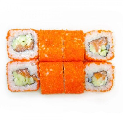 Сурими, огурец, майонез, икра тобико, авокадо, нори, рис.