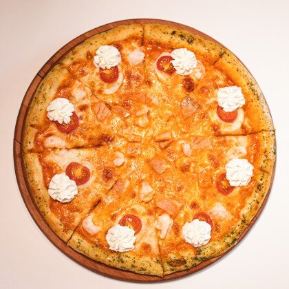 Моцарелла, Бекон, Цыпленок, Ветчина, Пепперони, Соус Томатный, Соус Песто