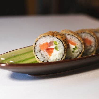 Сыр сливочный, авокадо, лосось, соус терияке, соус сырный, нори, рис