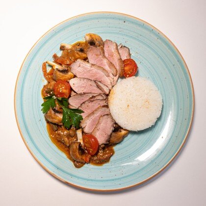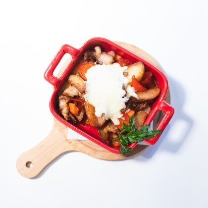 Приготовленное в сковороде вок, сочетает в себе мясо (выбирается между свининой и цыпленок ), овощами и лапшой удон. В конце добавляют зелёный лук и соус на выбор.