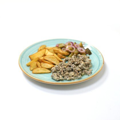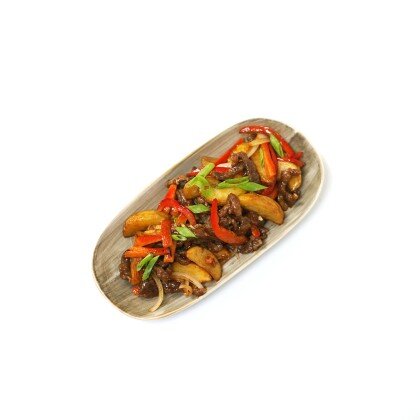 Свинина/цыпленок, стручковая фасоль, лук репчатый, морковь, сладкий перец, Лапша Удон, кунжут, соевый соус, лук зеленый, соус на выбор